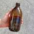 Botella de vidrio ámbar de 125 ml, ideal para almacenar productos caseros de limpieza, cosmética o higiene.