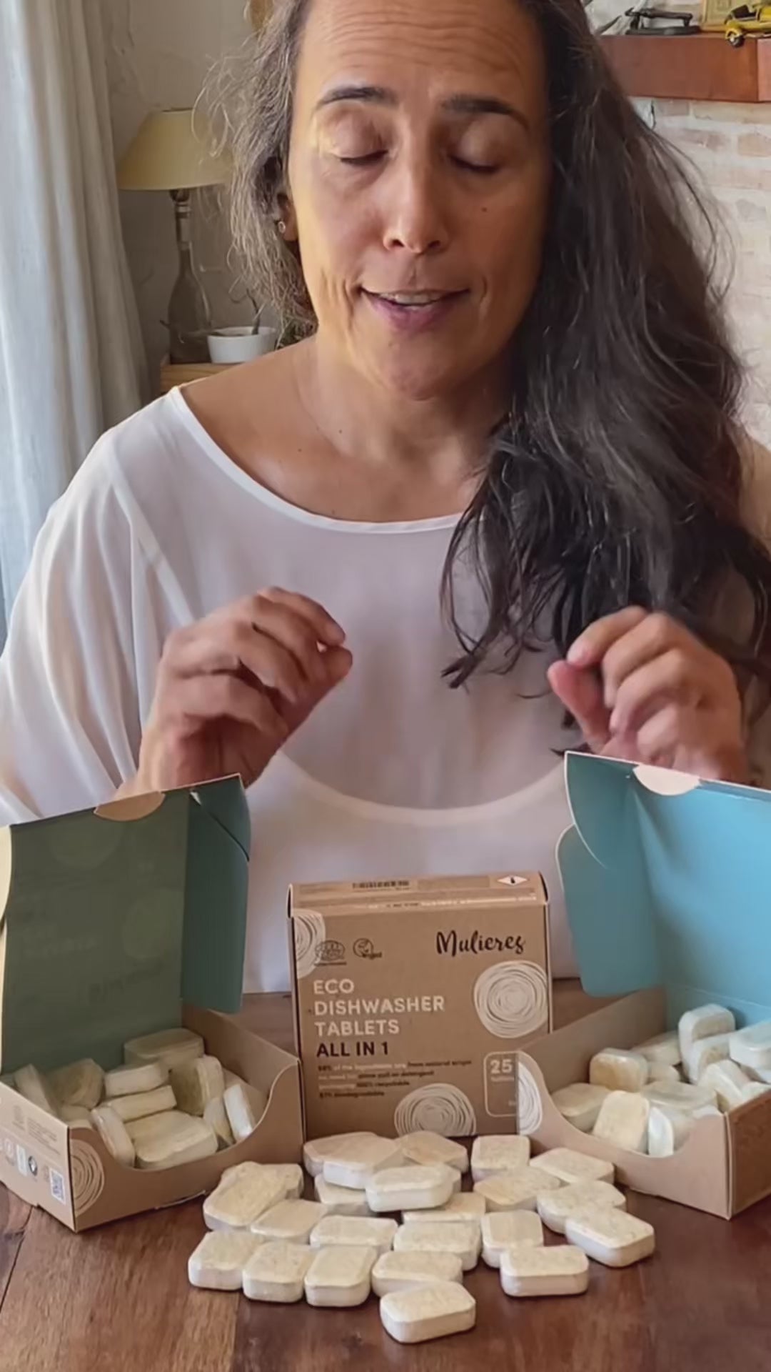 Los productos de Mulieres surgen por la necesidad de una familia de emplear en su hogar productos de limpieza naturales, debido a las alergias de sus hijas. Estas pastillas para el lavavajillas están elaborada con ingredientes naturales y son biodegradables. Son buenas para la salud de las personas y no contaminan las aguas.